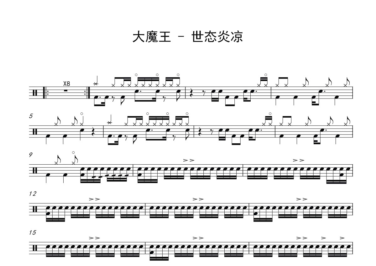 大魔王《世态炎凉》鼓谱 - 架子鼓谱