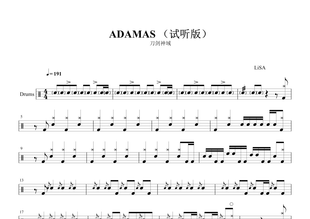 LiSA《ADAMAS》鼓谱 - 架子鼓谱 - 试听版