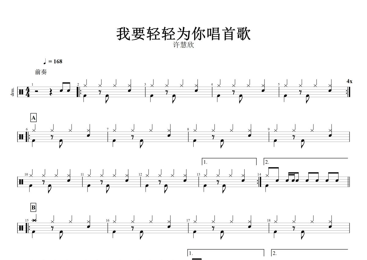 许慧欣《我要轻轻为你唱首歌》鼓谱 - 架子鼓谱