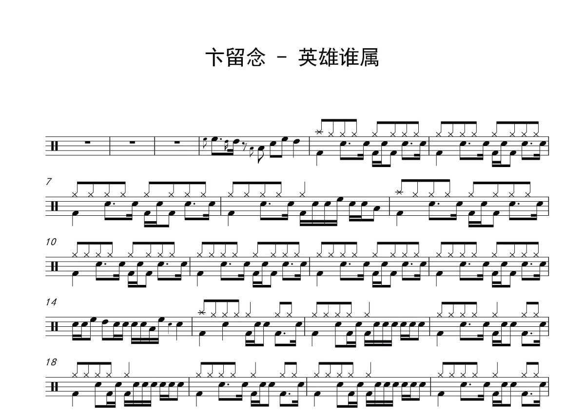 卞留念《英雄谁属》鼓谱 - 架子鼓谱