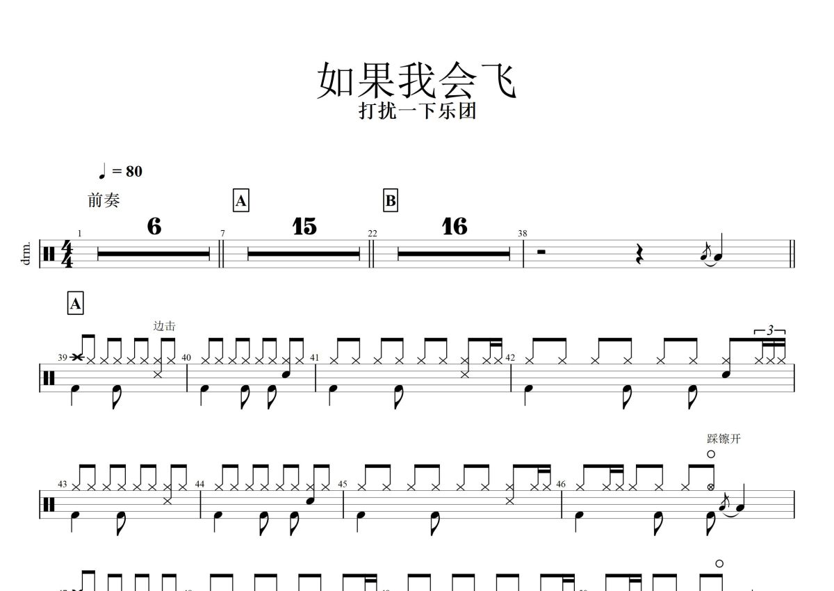 打扰一下乐团《如果我会飞》鼓谱 - 架子鼓谱