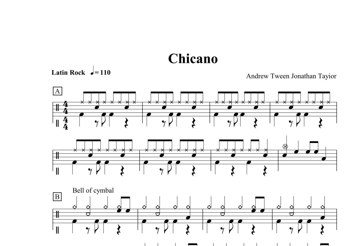 三级考级曲目《Chicano》鼓谱 - 架子鼓谱