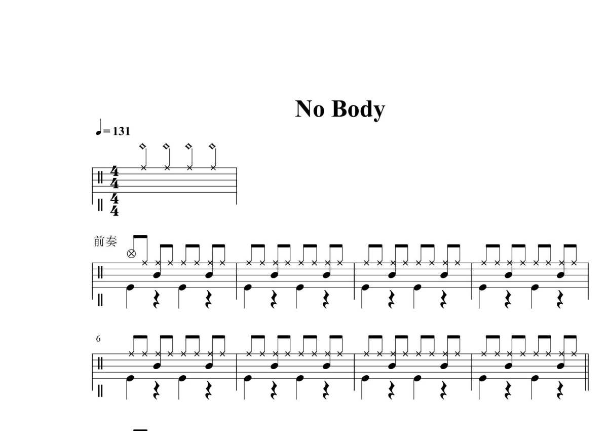 三级考级曲目《No Body》鼓谱 - 架子鼓谱