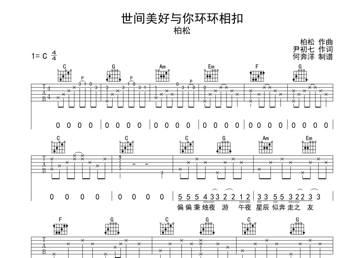 柏松《愿世间美好与你环环相扣》吉他谱 - C调弹唱六线谱