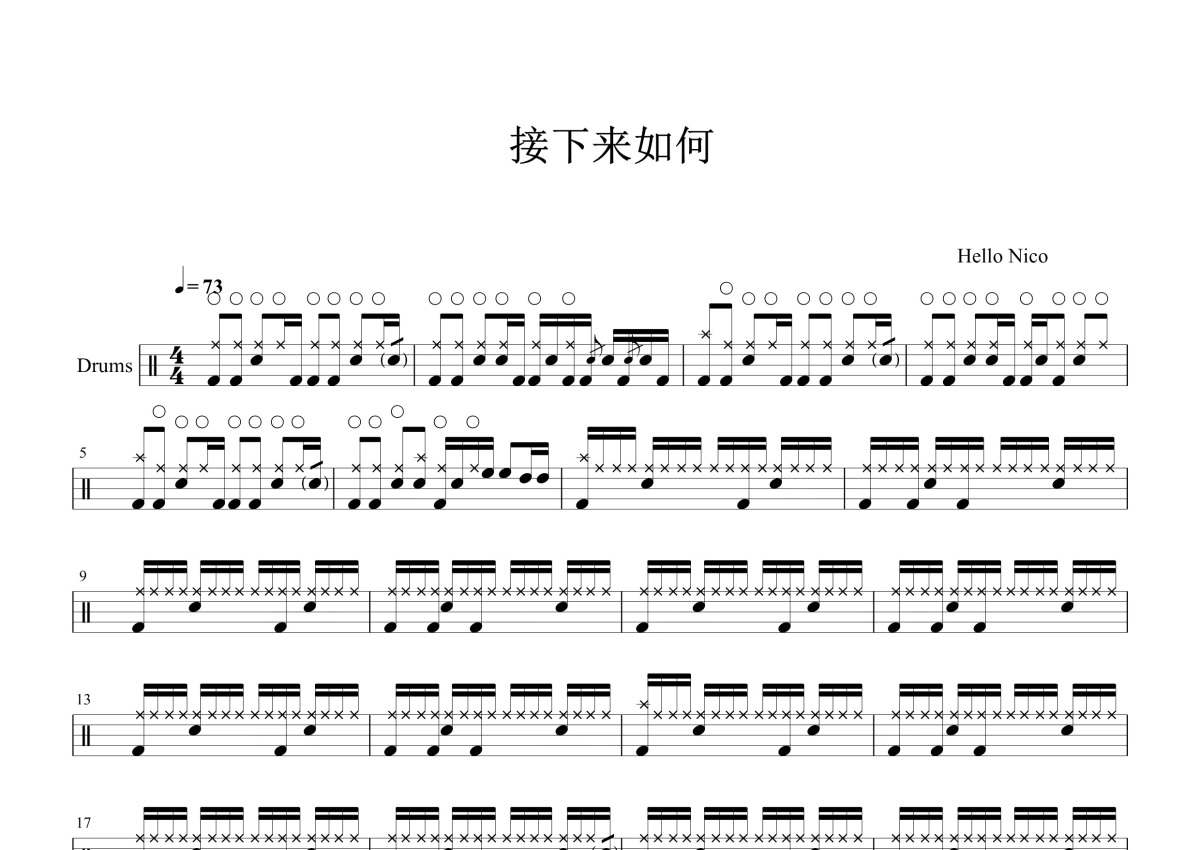 Hello Nico《接下来如何》鼓谱 - 架子鼓谱