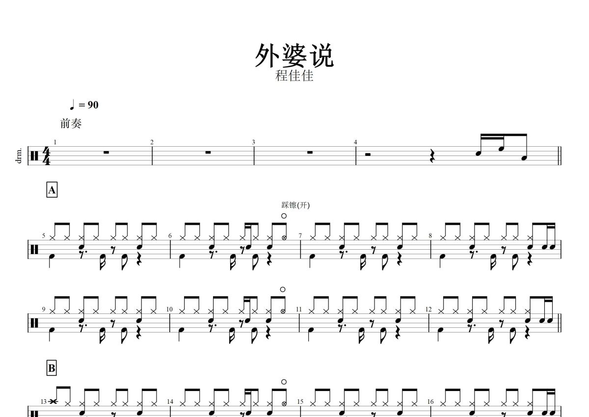 《外婆说》是程jiajia演唱的一首歌曲,这份鼓谱共有两张高清图谱,图谱由 @打鼓谱 编配上传,图谱使用五线谱编配,使用这份外婆说架子鼓谱,你将能够轻松地敲打出这首程jiajia的外婆说,快来尝试吧。《外婆说》是由歌手程jiajia演唱的一首歌曲,发行于2021年8月24日,由程jiajia、赵驿铭、赵倘若作词,程jiajia作曲。 。