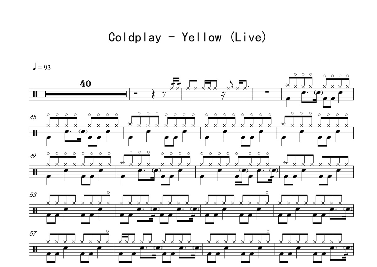 《Yellow》是Coldplay演唱的一首歌曲,这份鼓谱共有两张高清图谱,图谱由 @打鼓谱 编配上传,图谱使用五线谱编配,使用这份Yellow架子鼓谱,你将能够轻松地敲打出这首Coldplay的Yellow,快来尝试吧。《Yellow》是英国摇滚乐队酷玩乐队演唱的歌曲,由乐队四位成员克里斯·马汀、盖·贝瑞曼、强尼·邦蓝、威尔·查平共同填词,肯·尼尔森和乐队四位成员共同制作。这首歌被收录于乐队的首张专辑《Parachutes》里,并于2000年6月26日作为专辑的第二支单曲发布 [1] 。