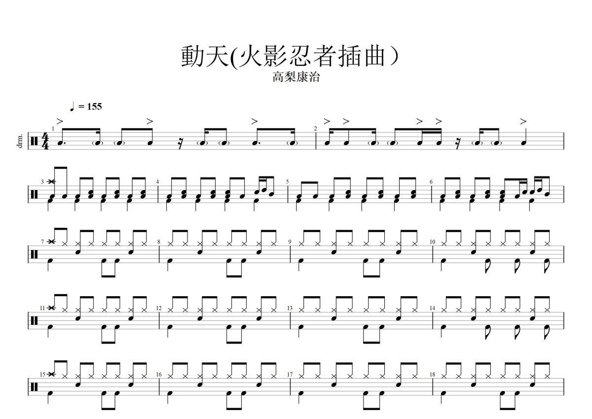 《動天》是高梨康治演唱的一首歌曲,这份鼓谱共有三张高清图谱,图谱由 @打鼓谱 编配上传,图谱使用五线谱编配,使用这份動天架子鼓谱,你将能够轻松地敲打出这首高梨康治的動天,快来尝试吧。動天-高梨康治 (たかなし やすはる)/刃-yaiba- (ヤイバ)歌曲下载 歌曲歌手专辑时长歌曲下载 動天-《火影忍者疾风传》动画配乐 高梨康治&刃-yaiba- NARUTO-ナルト...。