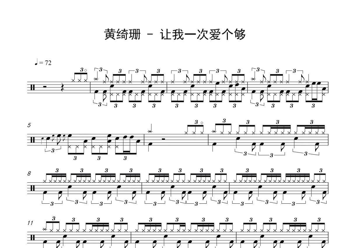 黄绮珊《让我一次爱个够》鼓谱 - 架子鼓谱