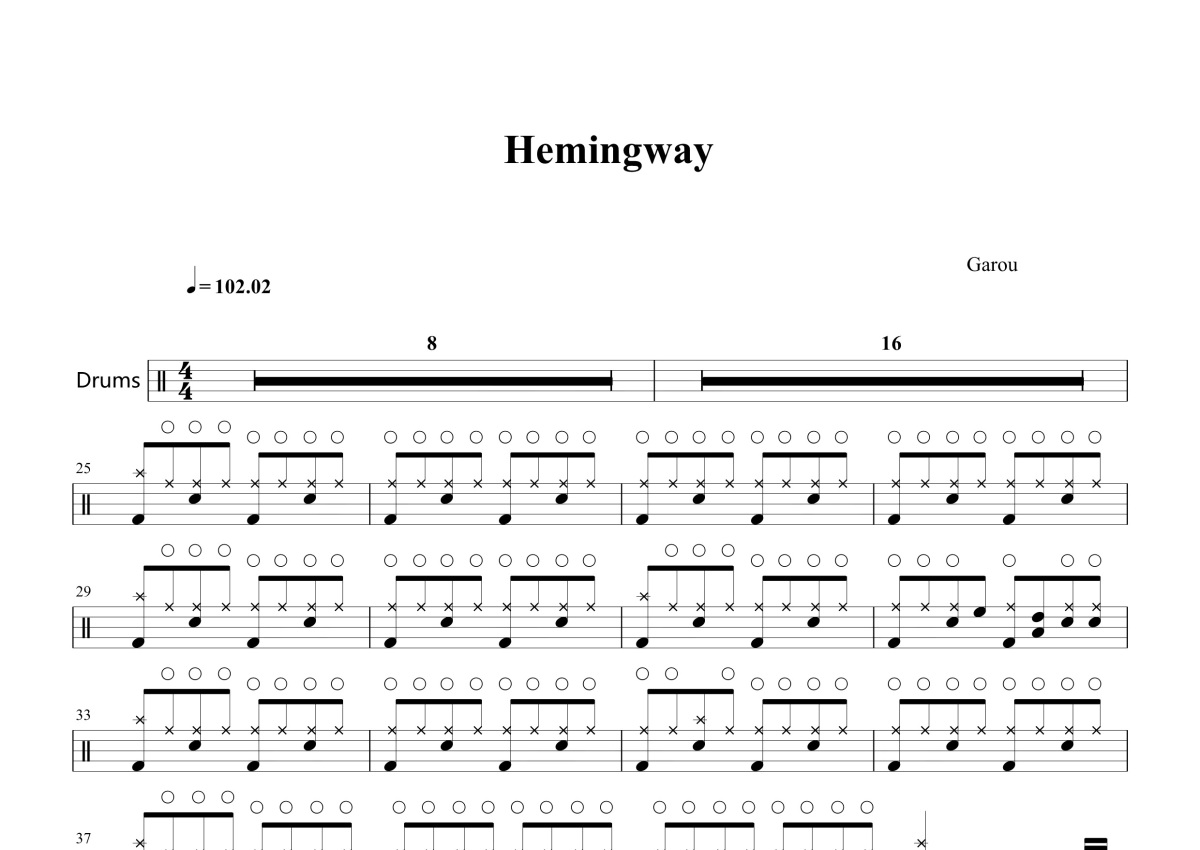 Garou《Hemingway》鼓谱 - 架子鼓谱
