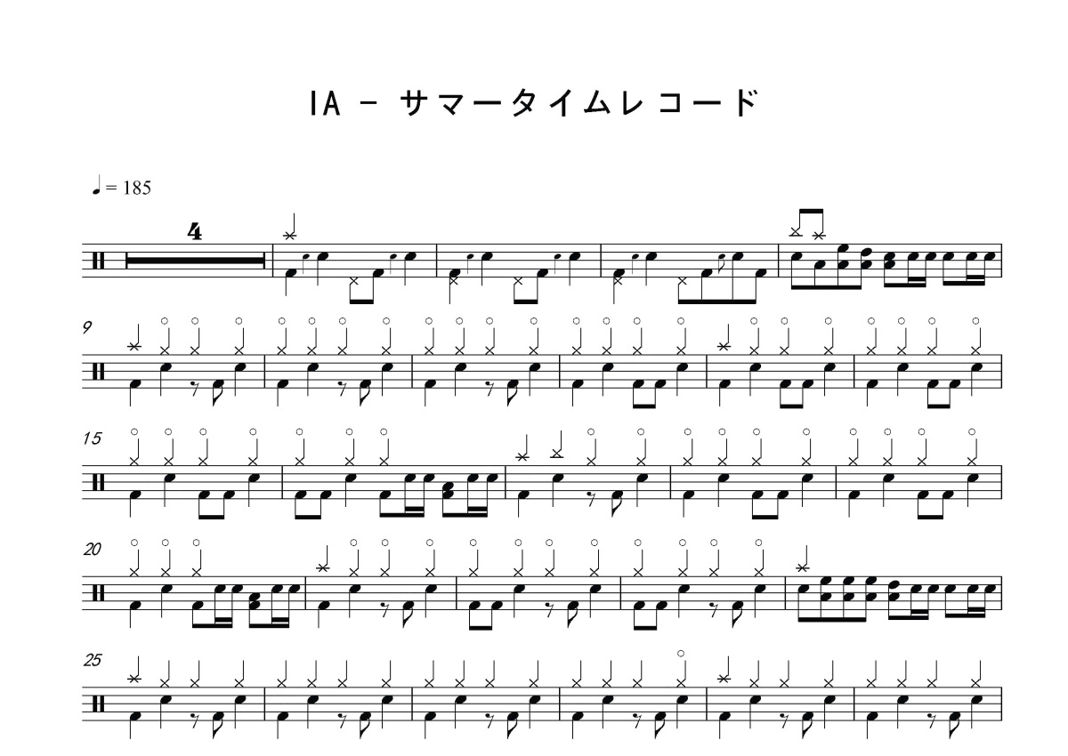 サマータイムレコード《IA(サマータイムレコード)》鼓谱 - 架子鼓谱