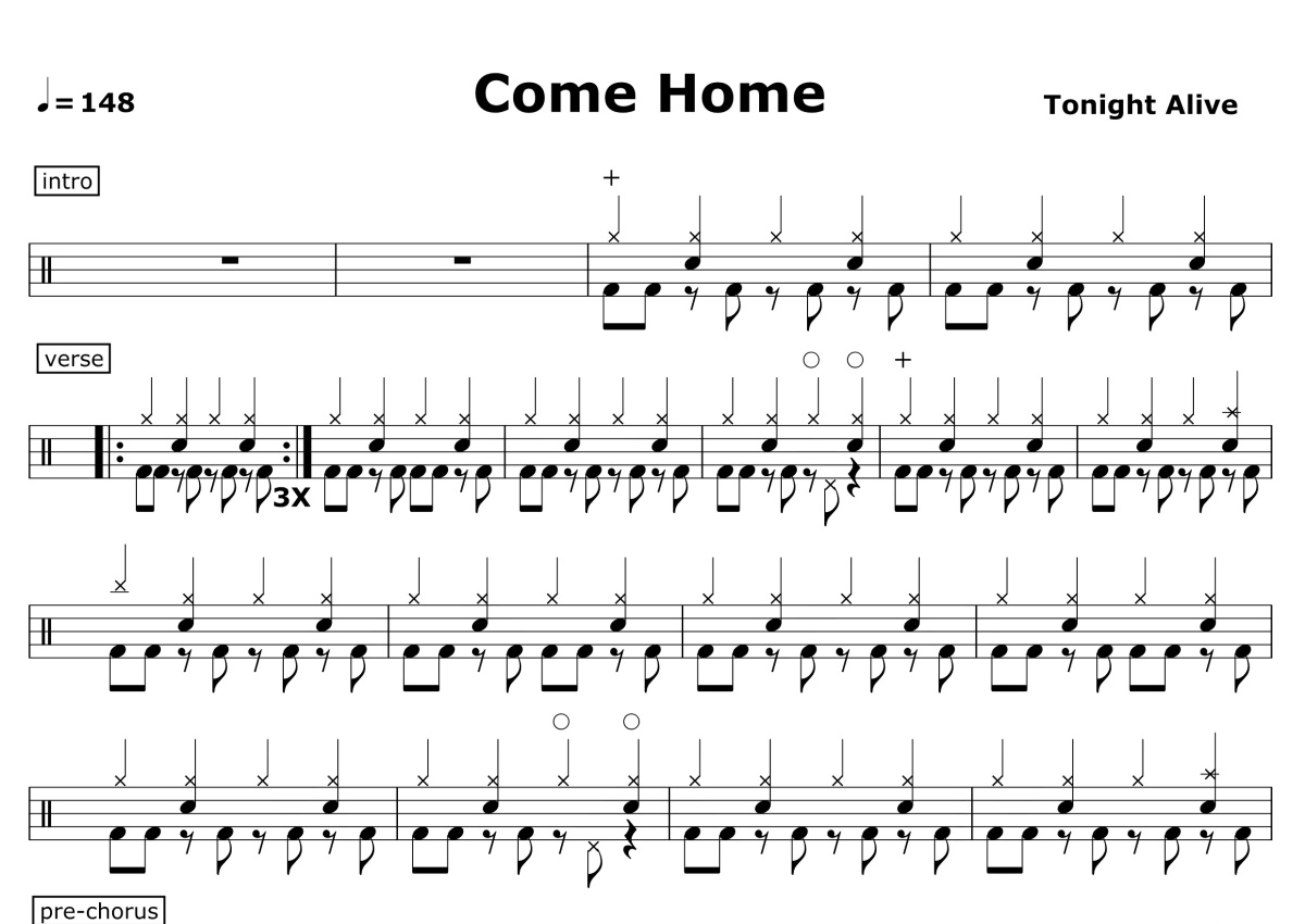 Tonight Alive《Come Home》鼓谱 - 架子鼓谱