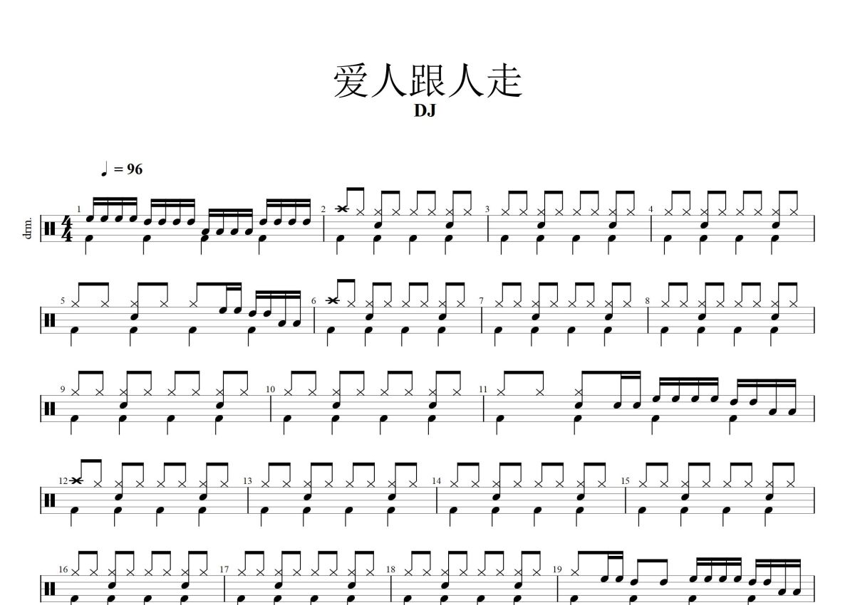 DJ (松哥)《爱人跟人走》鼓谱 - 架子鼓谱