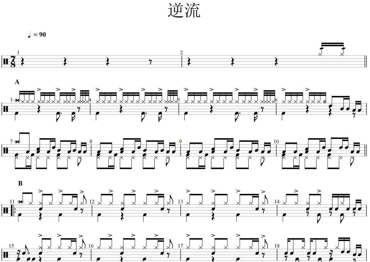 《逆流》是Drum Cover By Wenwei演唱的一首歌曲,这份鼓谱共有两张高清图谱,图谱由 @打鼓谱 编配上传,图谱使用五线谱编配,使用这份逆流架子鼓谱,你将能够轻松地敲打出这首Drum Cover By Wenwei的逆流,快来尝试吧。逆流(7/8拍) - Drum Cover By Wenwei。