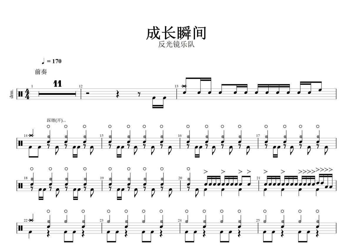反光镜乐队《成长瞬间》鼓谱 - 架子鼓谱