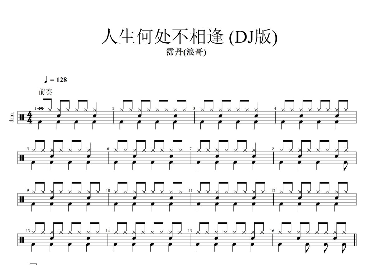 霈丹/浪哥《人生何处不相逢》鼓谱 - 架子鼓谱 - DJ版