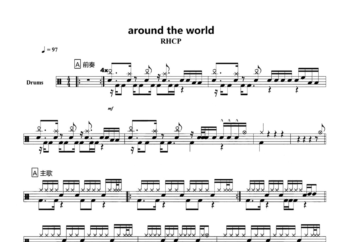 RHCP《Around the world》鼓谱 - 架子鼓谱