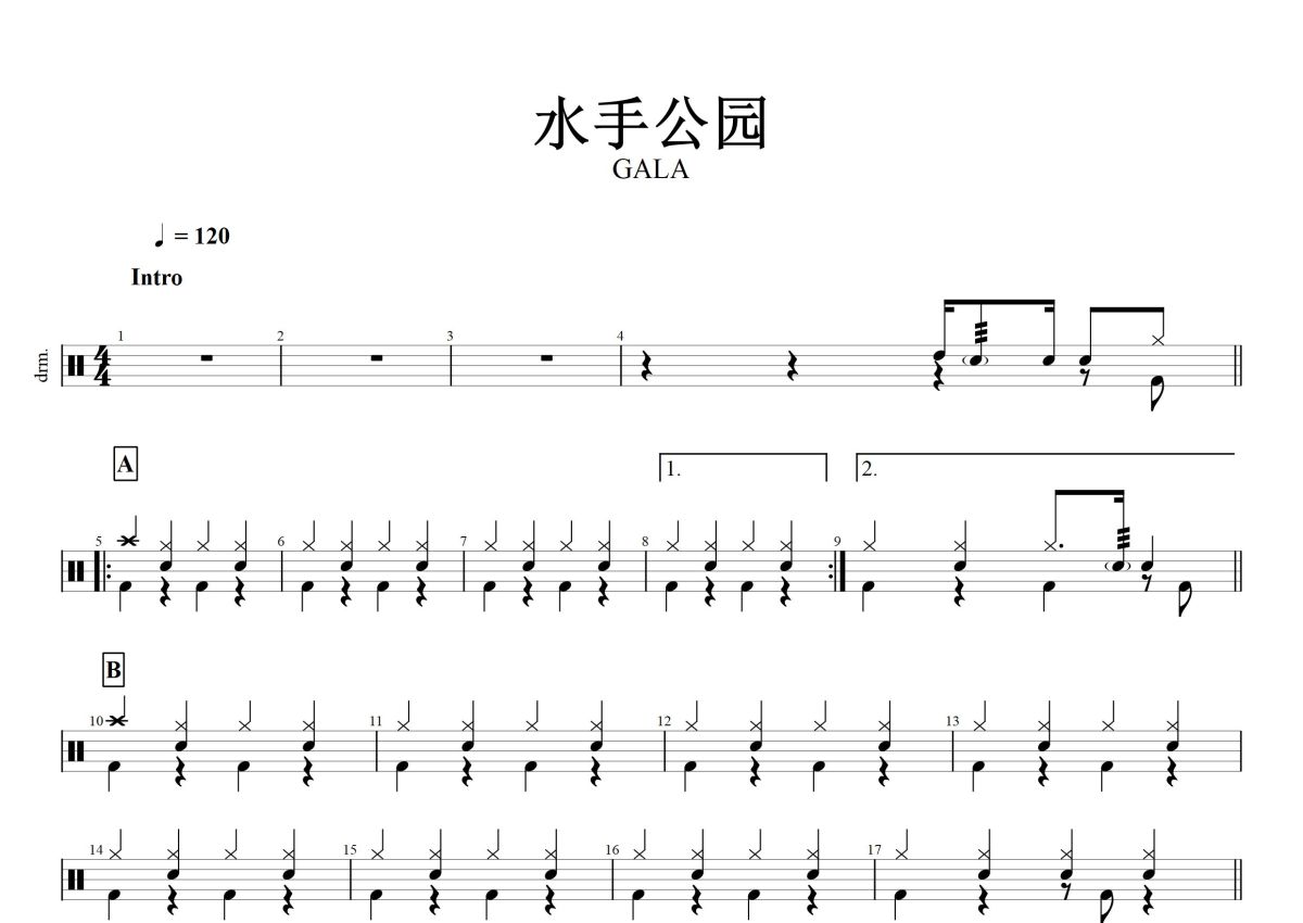 Gala乐队《水手公园》鼓谱 - 架子鼓谱