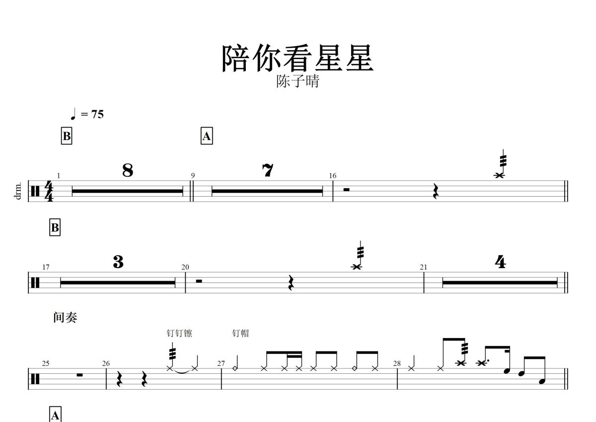 陈子晴《陪你看星星》鼓谱 - 架子鼓谱