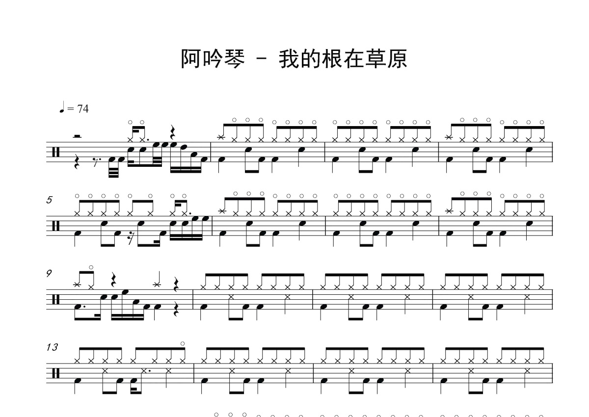 阿吟琴《我的根在草原》鼓谱 - 架子鼓谱