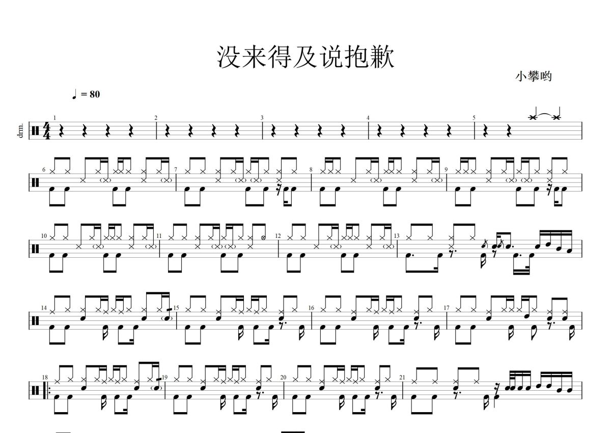 小攀哟《没来得及说抱歉》鼓谱 - 架子鼓谱