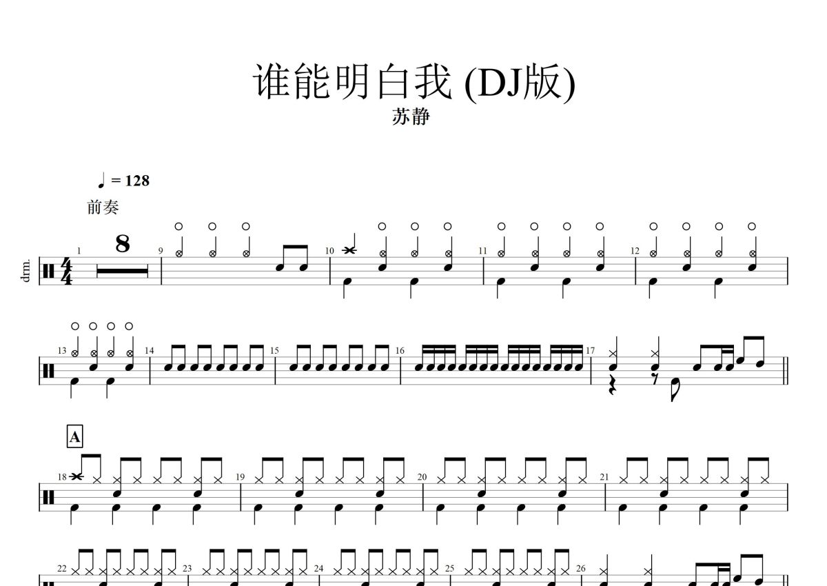 苏静《谁能明白我》鼓谱 - 架子鼓谱 - DJ抖音版