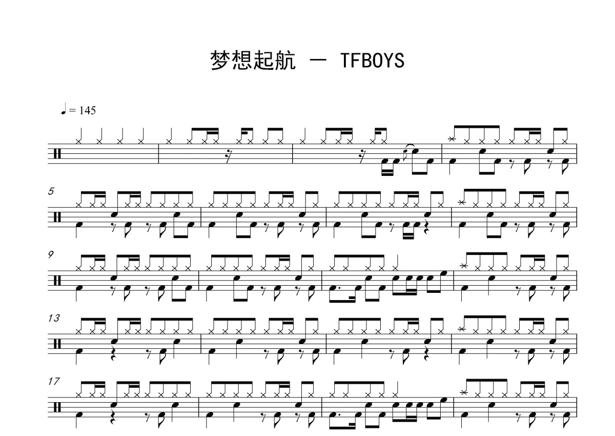 TFboys《梦想起航》鼓谱 - 架子鼓谱 - 稍改编
