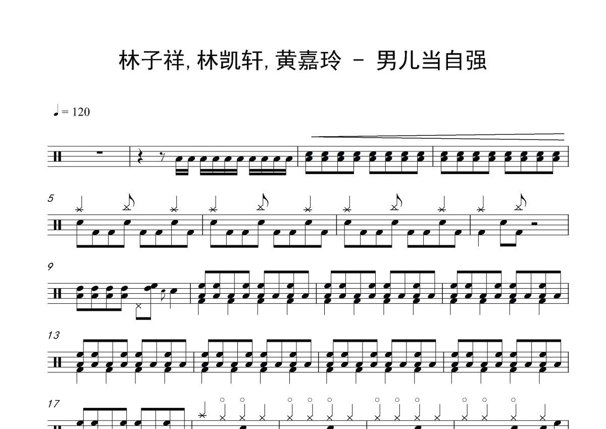 林子祥/林凯轩/黄嘉玲《男儿当自强》鼓谱 - 架子鼓谱