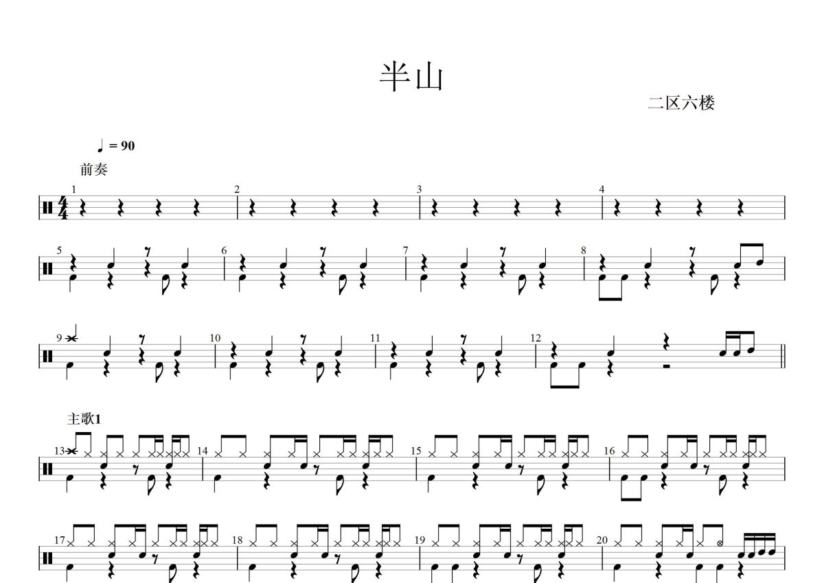 二区六楼《半山》鼓谱 - 架子鼓谱