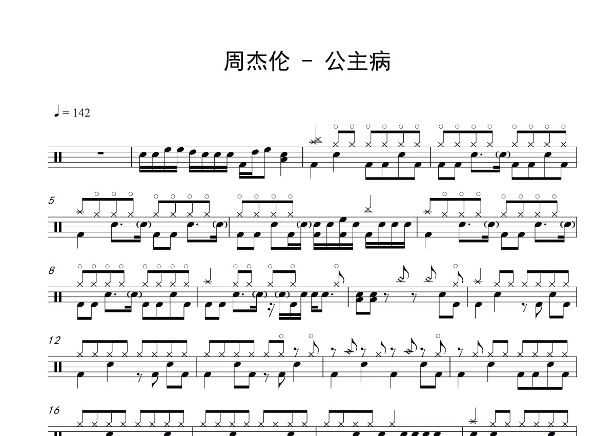 周杰伦《公主病》鼓谱 - 架子鼓谱