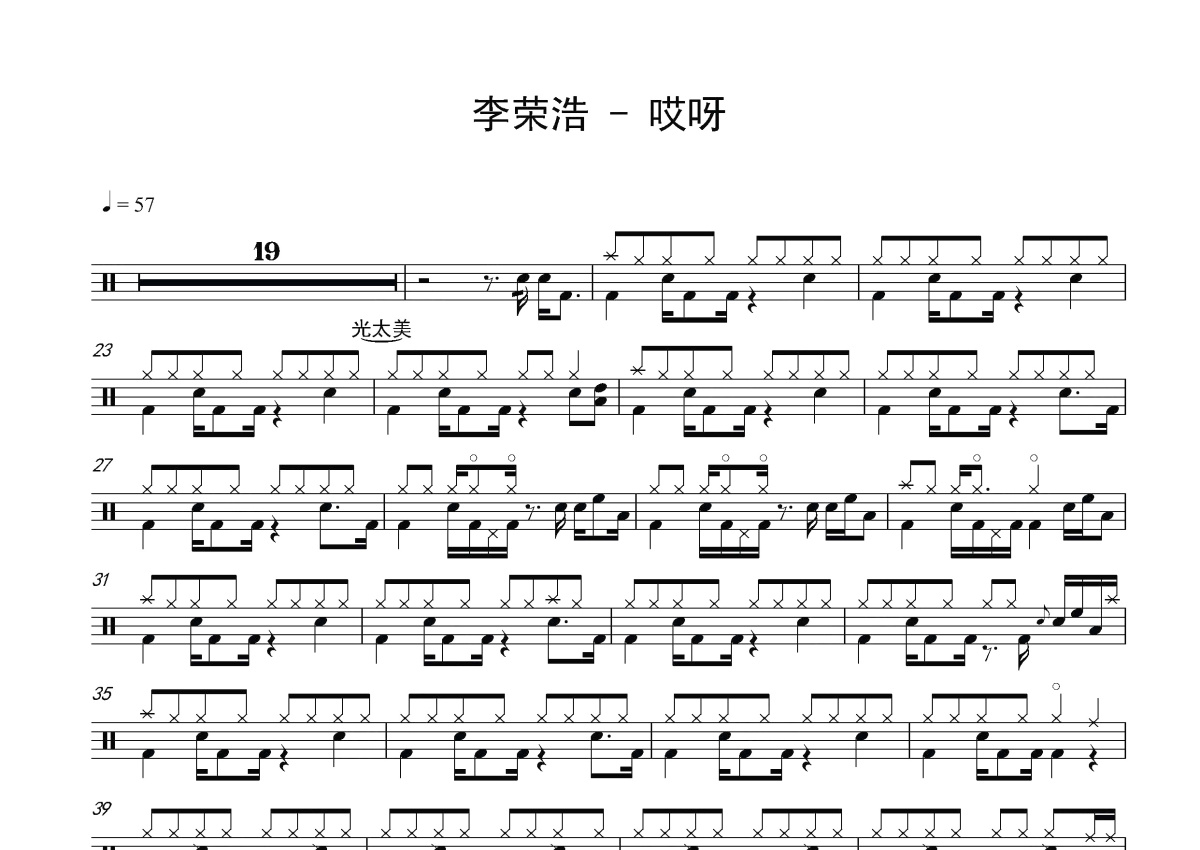 李荣浩《哎呀》鼓谱 - 架子鼓谱