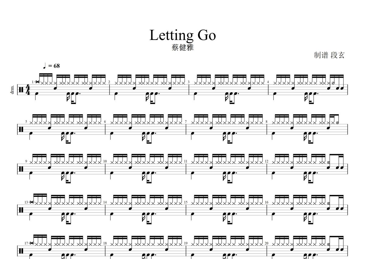 《Letting Go》是蔡健雅演唱的一首歌曲,这份鼓谱共有两张高清图谱,图谱由 @打鼓谱 编配上传,图谱使用五线谱编配,使用这份Letting Go架子鼓谱,你将能够轻松地敲打出这首蔡健雅的Letting Go,快来尝试吧。《Letting Go》是2011年蔡健雅演唱的一首歌曲,收录在专辑《说到爱》。 。