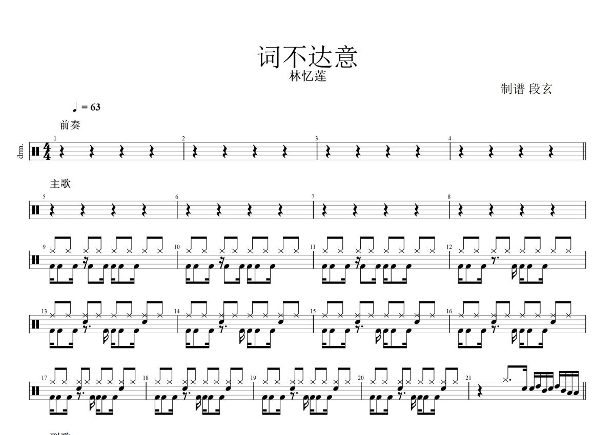 林忆莲《词不达意》鼓谱 - 架子鼓谱