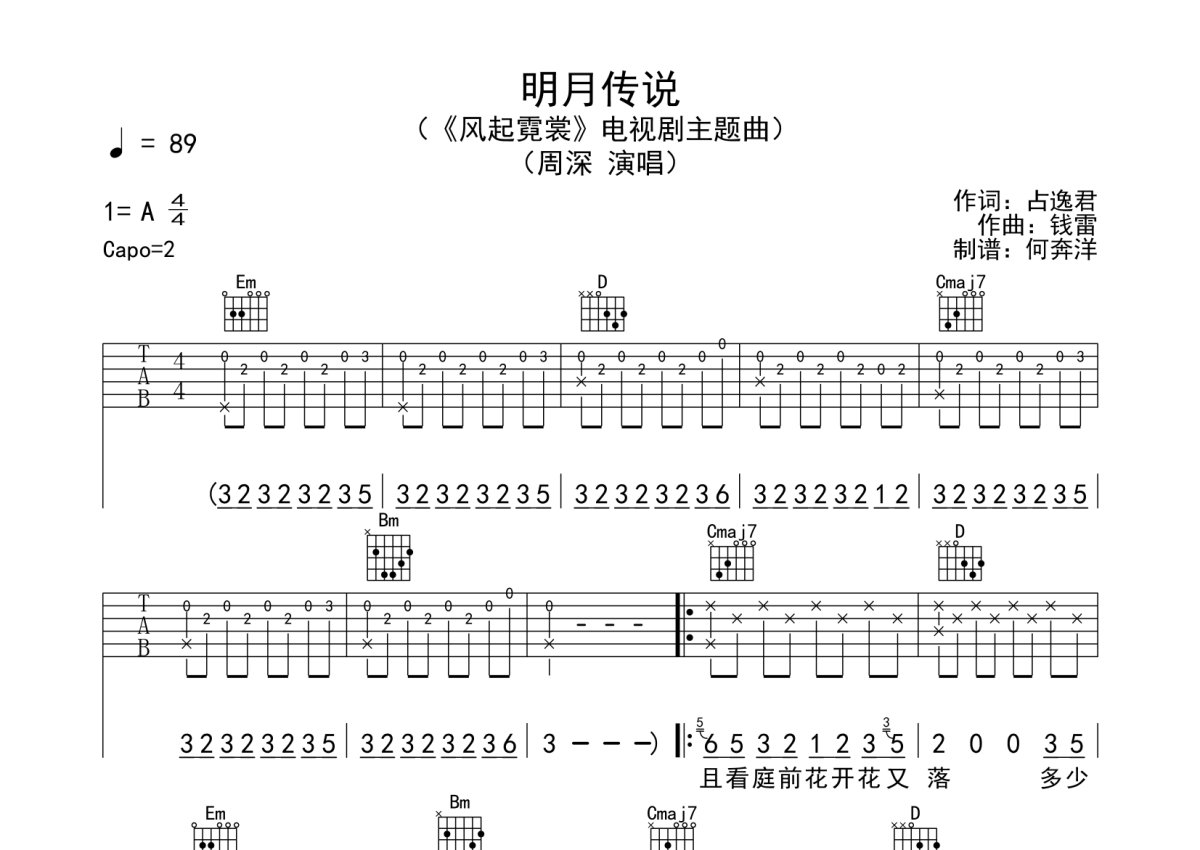 周深《明月传说》吉他谱 - G调弹唱六线谱