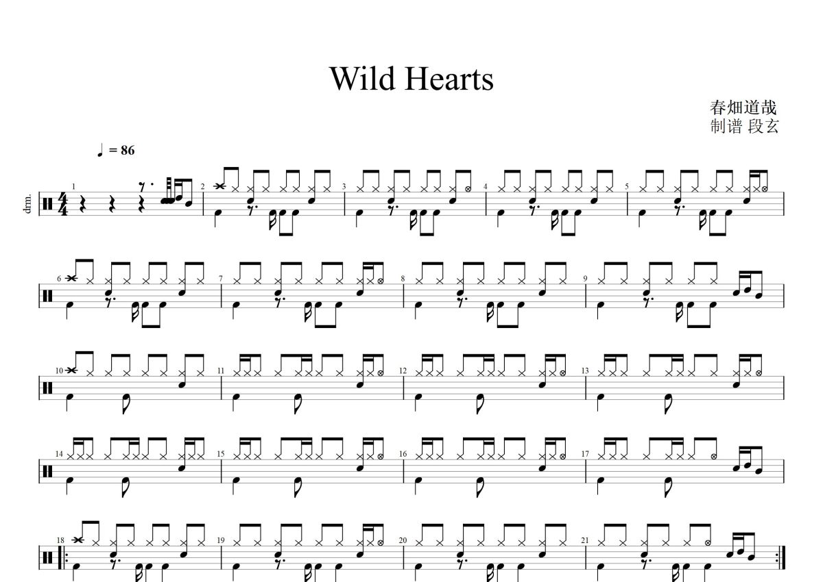 春畑道哉《Wild Hearts》鼓谱 - 架子鼓谱