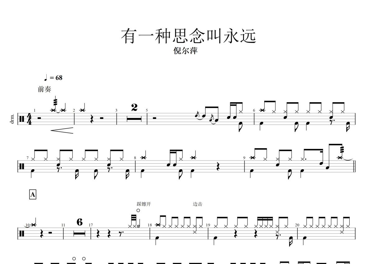 《有一种思念叫永远》是倪尔萍演唱的一首歌曲,这份鼓谱共有两张高清图谱,图谱由 @打鼓谱 编配上传,图谱使用五线谱编配,使用这份有一种思念叫永远架子鼓谱,你将能够轻松地敲打出这首倪尔萍的有一种思念叫永远,快来尝试吧。倪尔萍《有一种思念叫永远》词、曲:刘习军,是原创类高清视频,于2020-03-04上映。视频主要内容:歌曲,有一种思念叫永远。