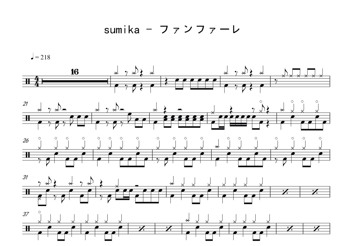 sumika《ファンファーレ》鼓谱 - 架子鼓谱