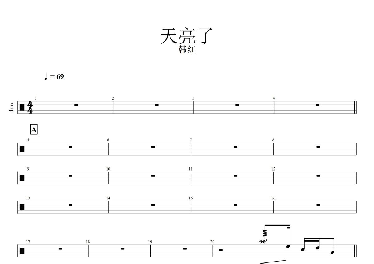 韩红《天亮了》鼓谱 - 架子鼓谱
