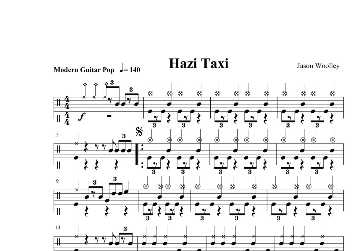 五级考级曲目《Hazi Taxi》鼓谱 - 架子鼓谱