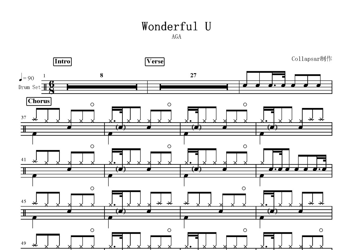 AGA《Wonderful U》鼓谱 - 架子鼓谱