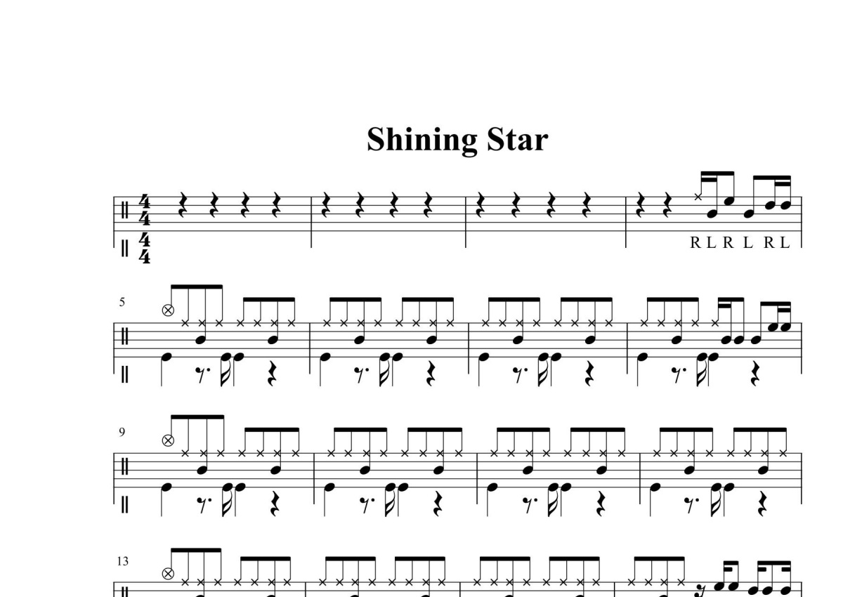 五级考级曲目《Shining Star》鼓谱 - 架子鼓谱