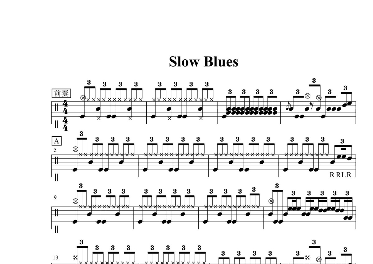 五级考级曲目《Slow Blues》鼓谱 - 架子鼓谱