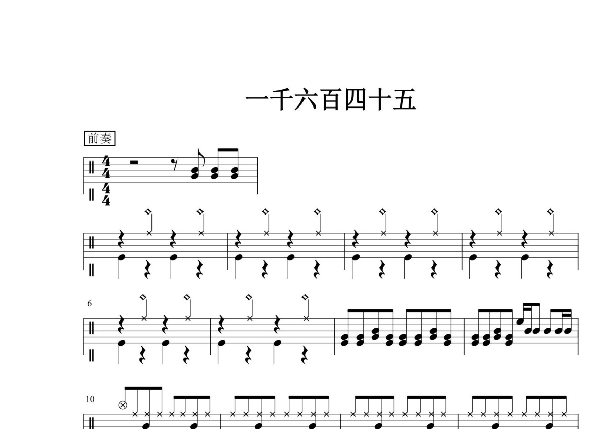 五级考级曲目《一千六百四十五》鼓谱 - 架子鼓谱