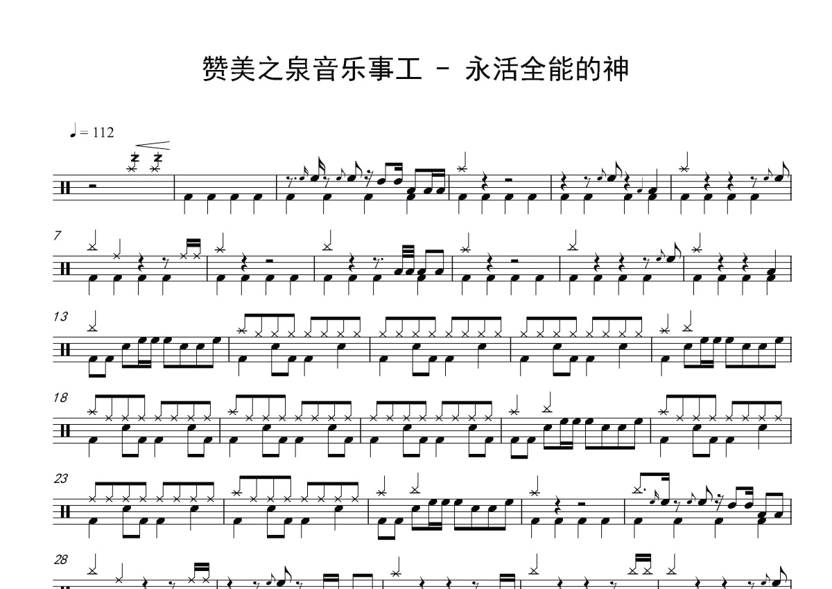 赞美之泉《永活全能的神》鼓谱 - 架子鼓谱