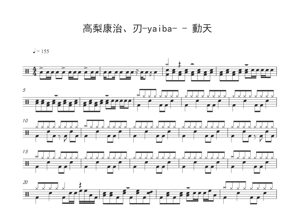 高梨康治《動天》鼓谱 - 架子鼓谱