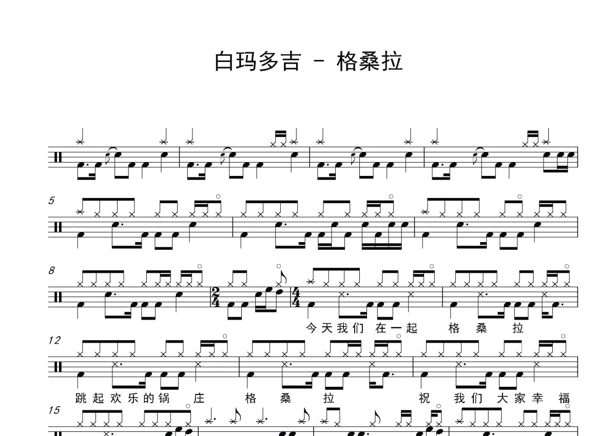 白玛多吉《格桑拉》鼓谱 - 架子鼓谱