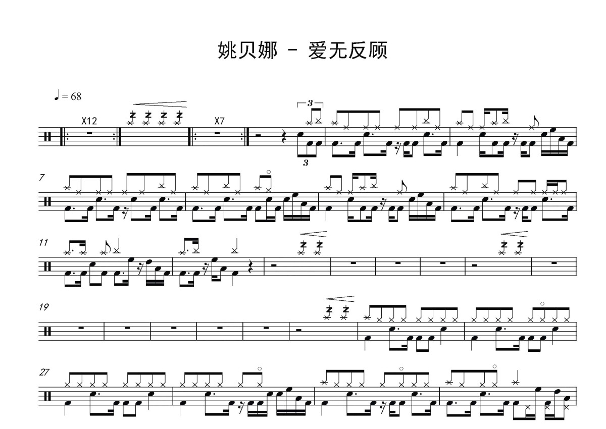 《爱无反顾》是姚贝娜演唱的一首歌曲,这份鼓谱共有一张高清图谱,图谱由 @打鼓谱 编配上传,图谱使用五线谱编配,使用这份爱无反顾架子鼓谱,你将能够轻松地敲打出这首姚贝娜的爱无反顾,快来尝试吧。《爱无反顾》是姚贝娜演唱的歌曲。曲 梁翘柏,唐恬填词。电影《我爱的是你爱我》电影主题曲。收入在专辑《1/2的我》中。发行于2013-12-09。