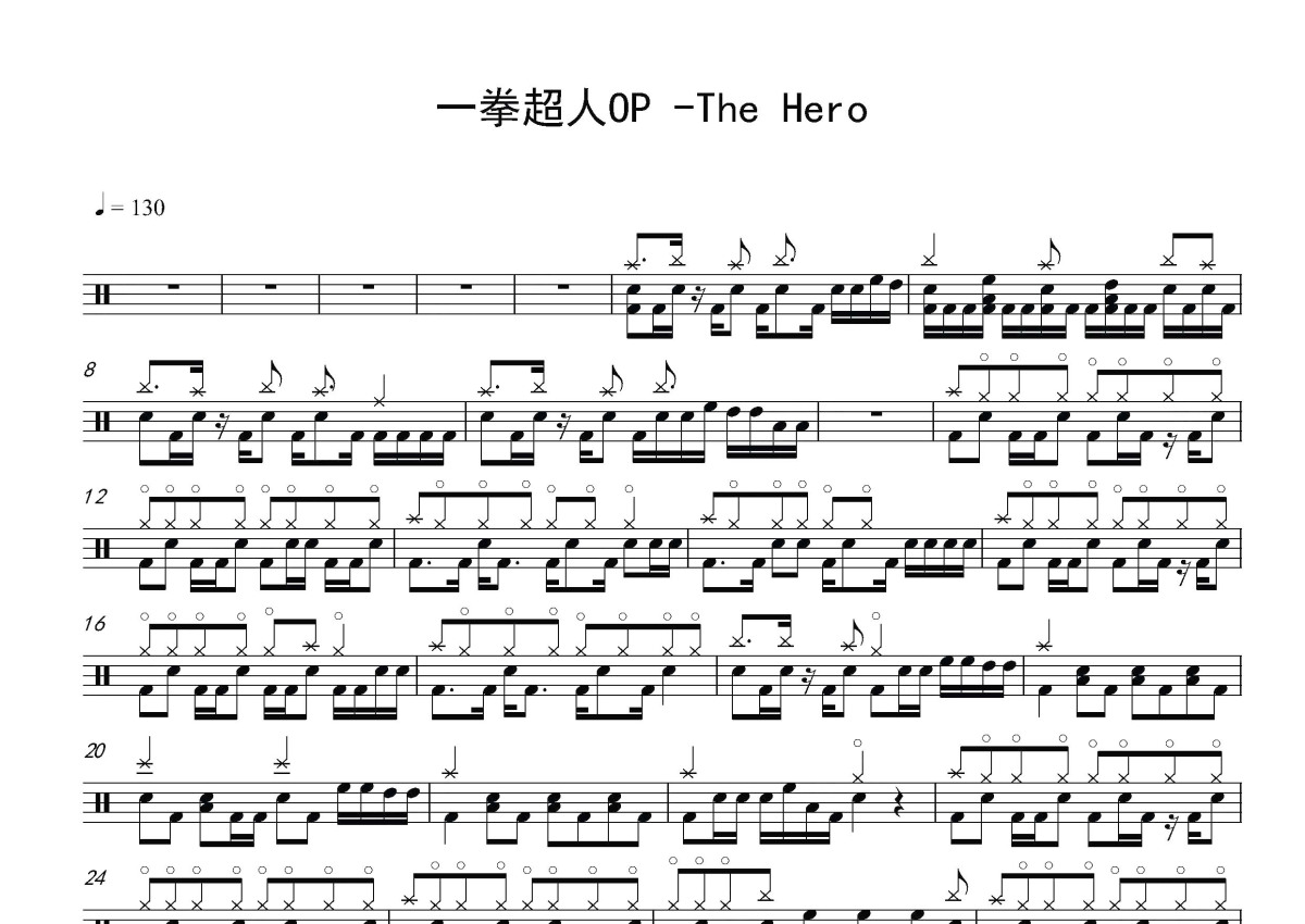《The hero》是JAM Project演唱的一首歌曲,这份鼓谱共有一张高清图谱,图谱由 @打鼓谱 编配上传,图谱使用五线谱编配,使用这份The hero架子鼓谱,你将能够轻松地敲打出这首JAM Project的The hero,快来尝试吧。一拳超人主题曲。
