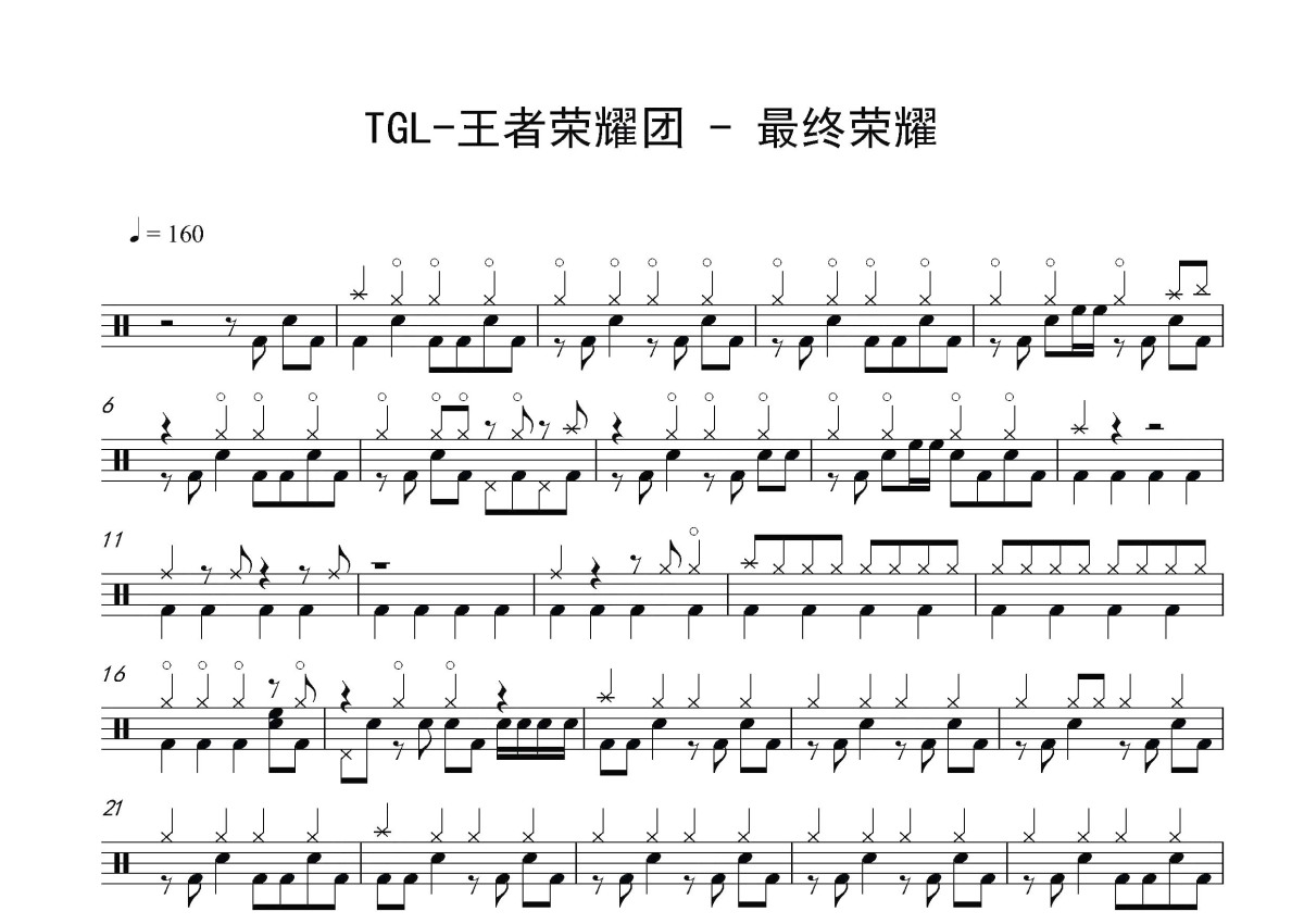 TGL-王者荣耀团《最终荣耀》鼓谱 - 架子鼓谱
