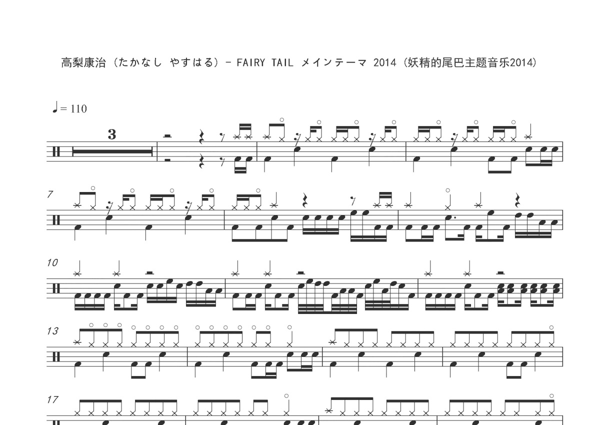 《FAIRY TAIL メインテーマ》是高梨康治演唱的一首歌曲,这份鼓谱共有两张高清图谱,图谱由 @打鼓谱 编配上传,图谱使用五线谱编配,使用这份FAIRY TAIL メインテーマ架子鼓谱,你将能够轻松地敲打出这首高梨康治的FAIRY TAIL メインテーマ,快来尝试吧。专辑: 「FAIRY TAIL」ORIGINAL SOUNDTRACK VOL.1 歌手:高梨康治 纯音乐,请欣赏 FAIRY TAIL メインテーマ。